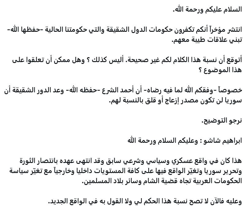 در کنار این اکثریت با این نگرش، شافعی ها و زیدی های یمن به همراه شافعی های فلسطین و به صورت مشخص شافعی های غزه و دسته هایی از شافعی های کُردستان عراق بخشی از این جبهه شده اند.